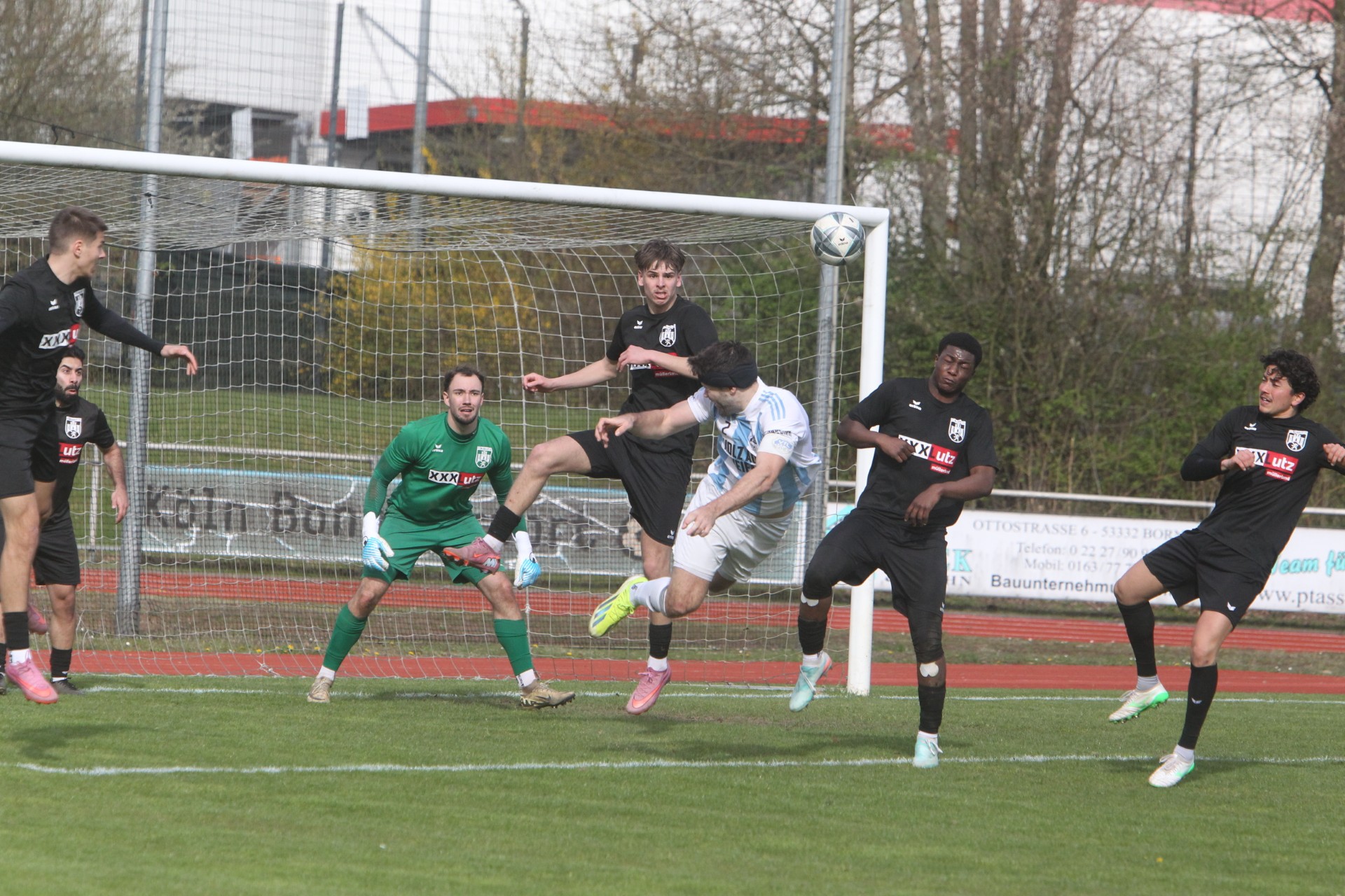 Die erste große Torchance bot sich dem Gast aus Stolberg in der 9. Minute. Doch konnte Burak Mus den Ball auf der Torlinie stoppen. Kurz danach Pech bei einem Lattentreffer ,nach zugespieltem Pass von Ansgar Pflüger, per Kopfball von Levi Dang.