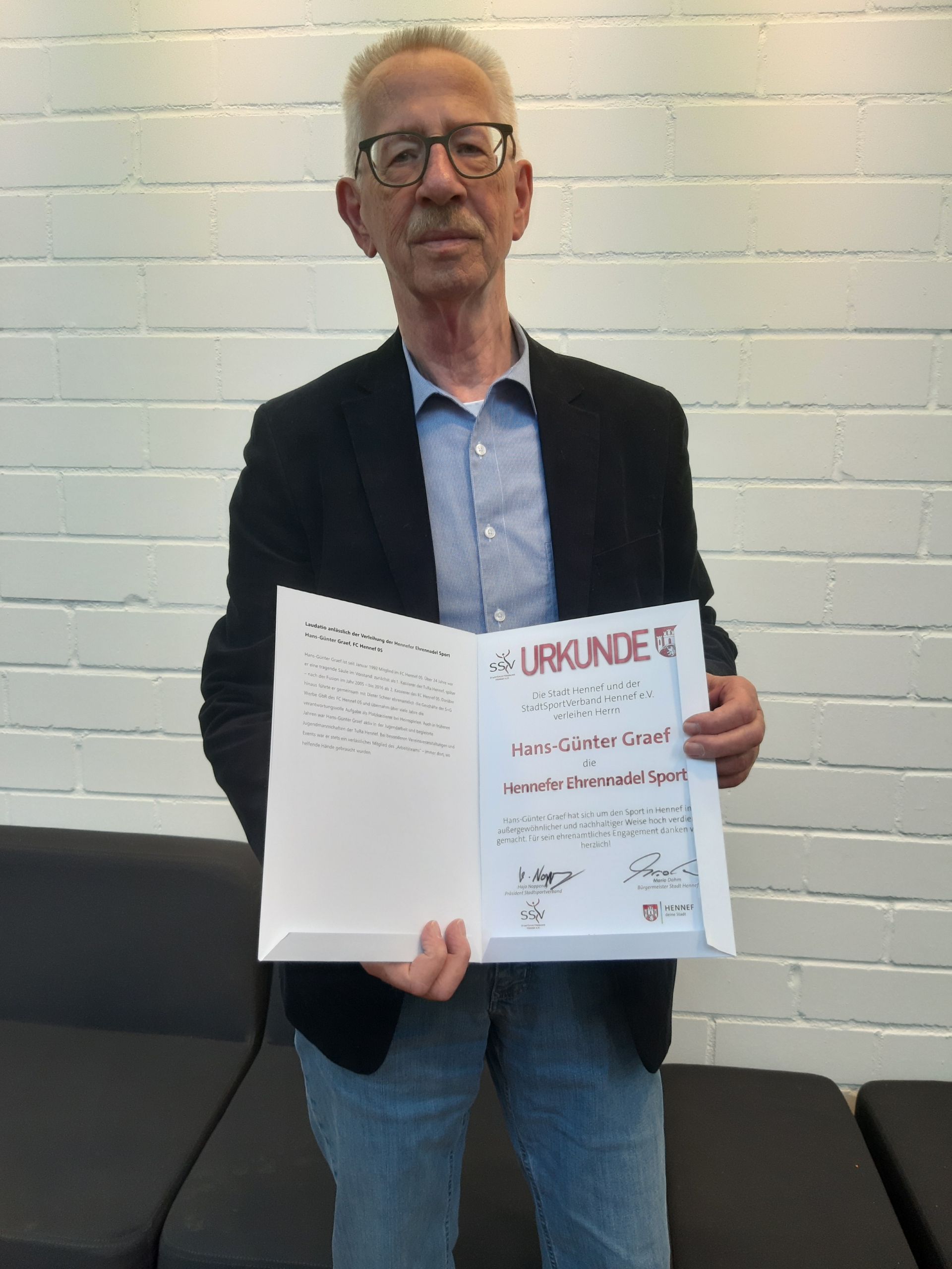 Der FC Hennef 05 gratuliert Hans-Günter zu dieser verdienten Auszeichnung und wünscht ihm für die Zukunft alles Gute.